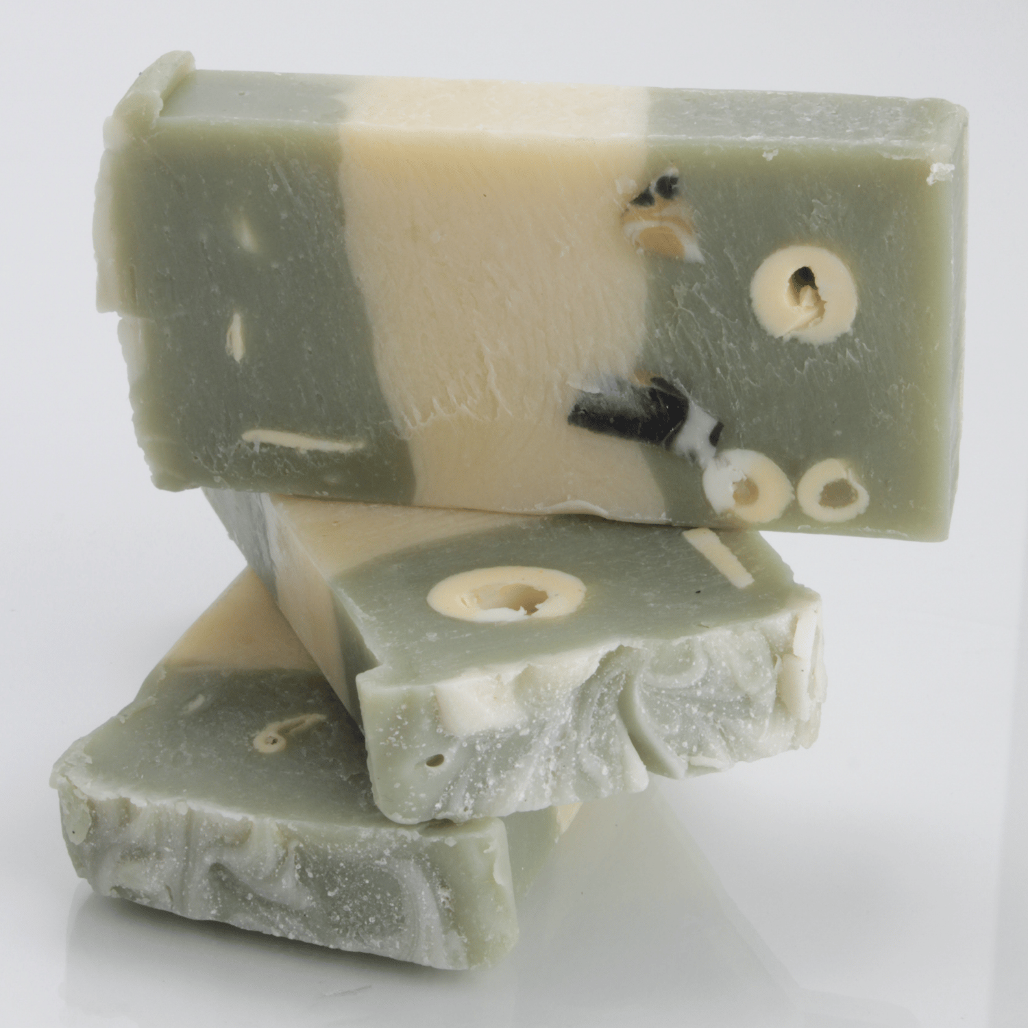 Ingredients- *Aloe vera & Cucumber Puree´, Saponified oils of: *Olive, *Coconut, and *Castor Bean. *Cocoa Butter, *Shea Butter, basil essential oil, carrot seed essential oil, cedarwood essential oil, sea clay.